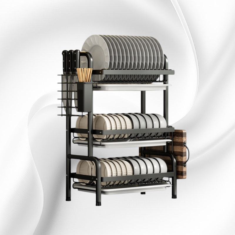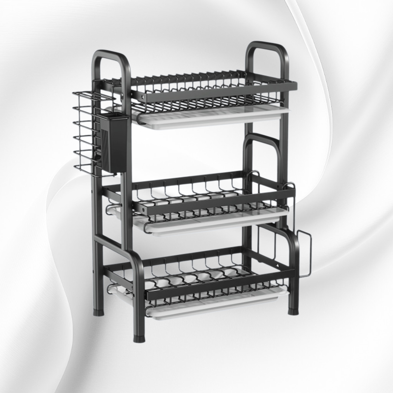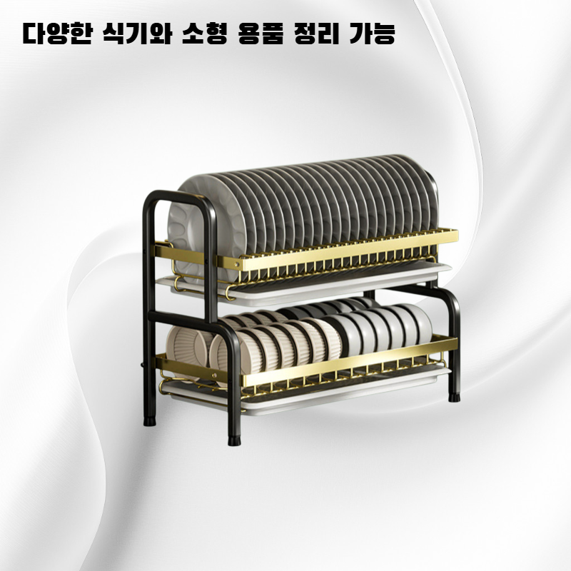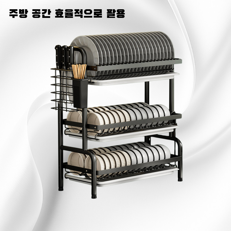 주방 공간 효율 극대화, 다양한 주방 용품 정리 가능, 견고한 소재와 간편한 설치, 탁상용으로 어디서든 사용 가능, 깔끔한 수납으로 주방 정돈에 최적화.