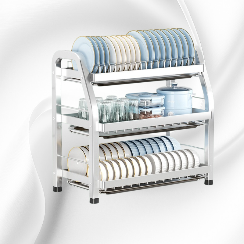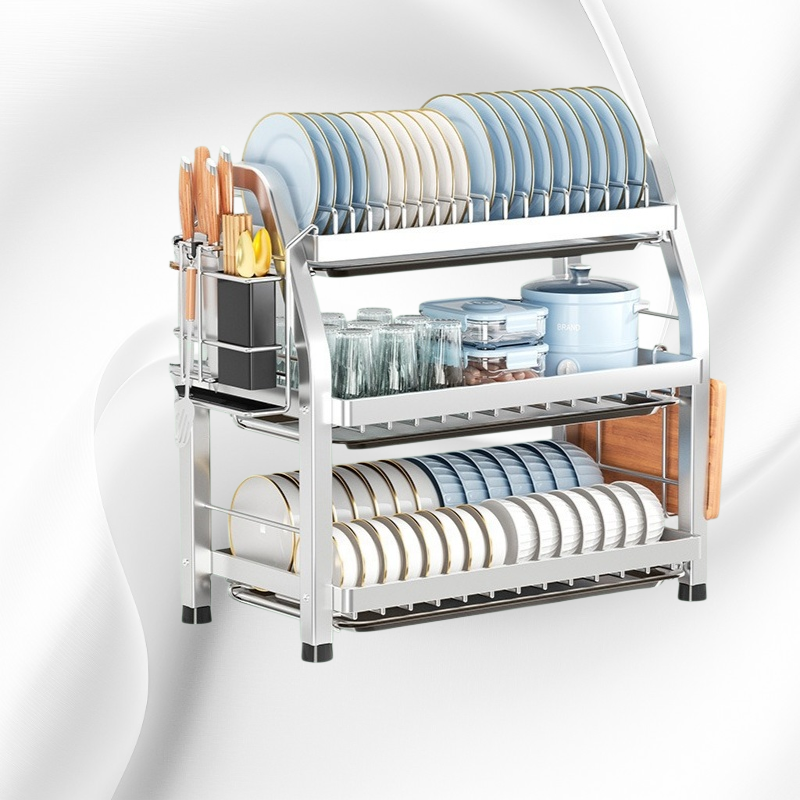 슬림한 디자인으로 공간 효율성 극대화, 스테인리스 재질로 위생적 관리, 간편한 물 빠짐 구조, 다양한 주방 식기 수납 가능, 설치와 청소 용이